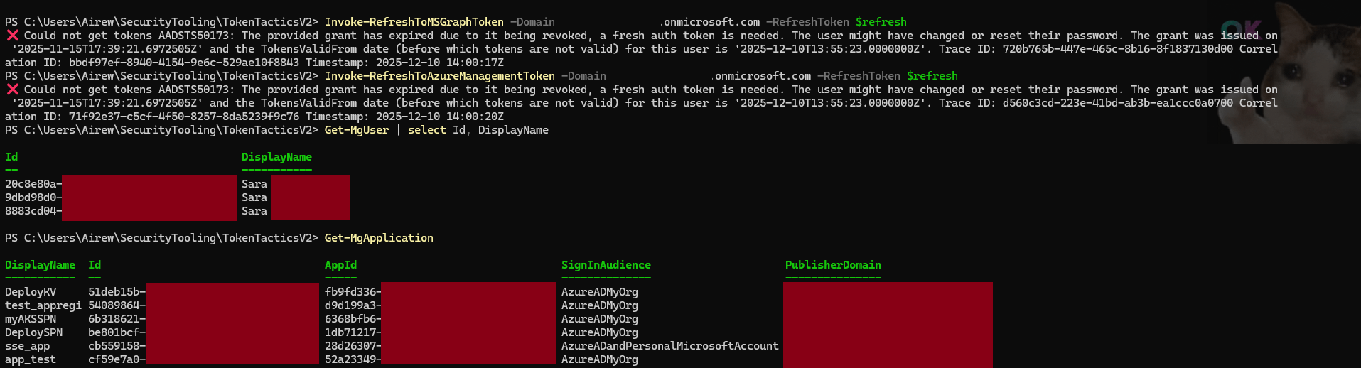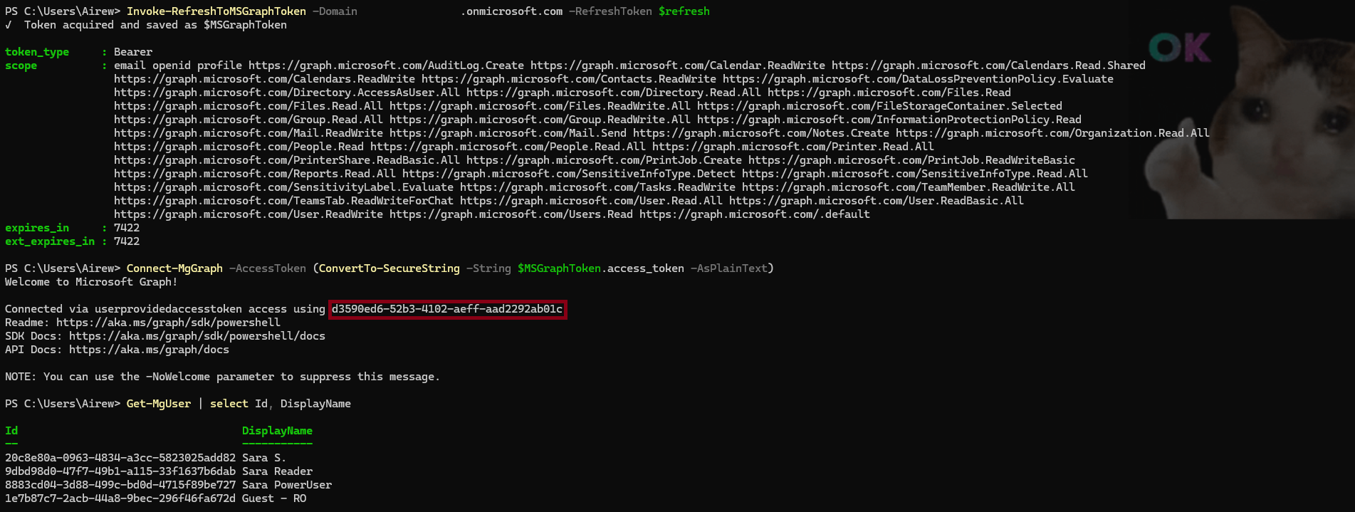 Using TokenTactics, let’s leverage the refresh token to obtain access tokens for Microsoft Graph: