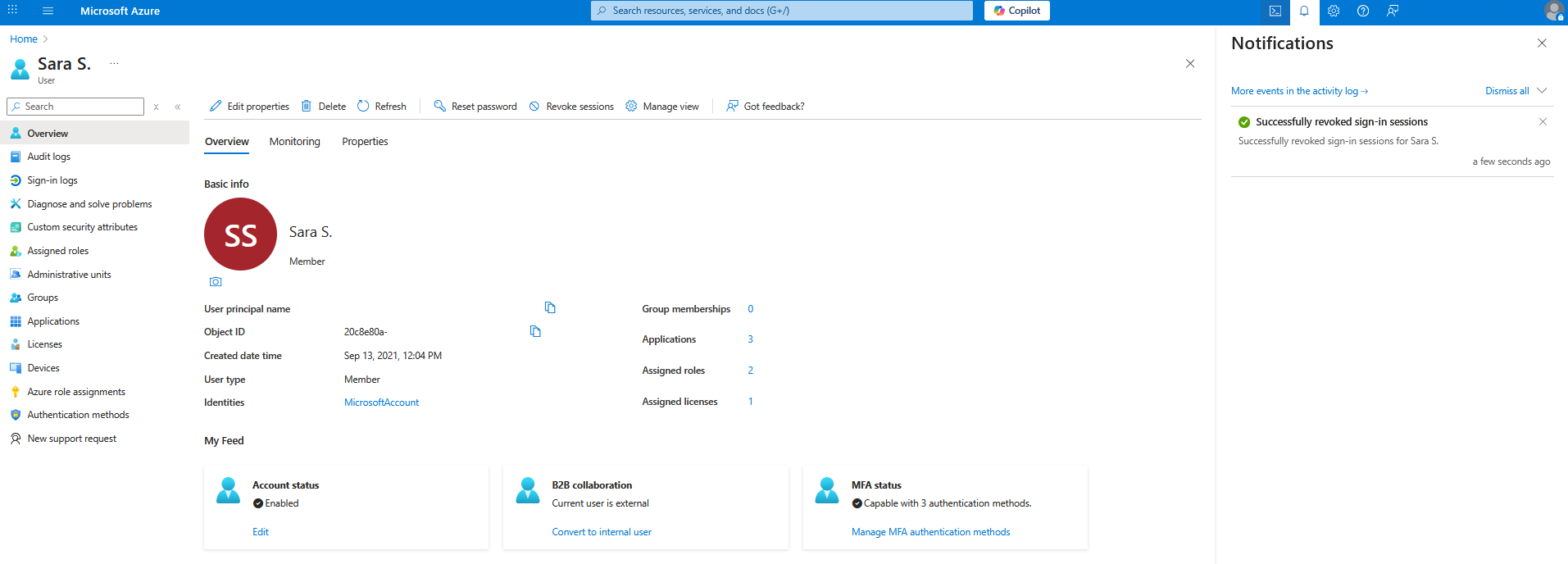 ➡️ Revoking sign-in sessions invalidates browser sessions and prevents users from acquiring new tokens. Existing access tokens remain valid until expiration.