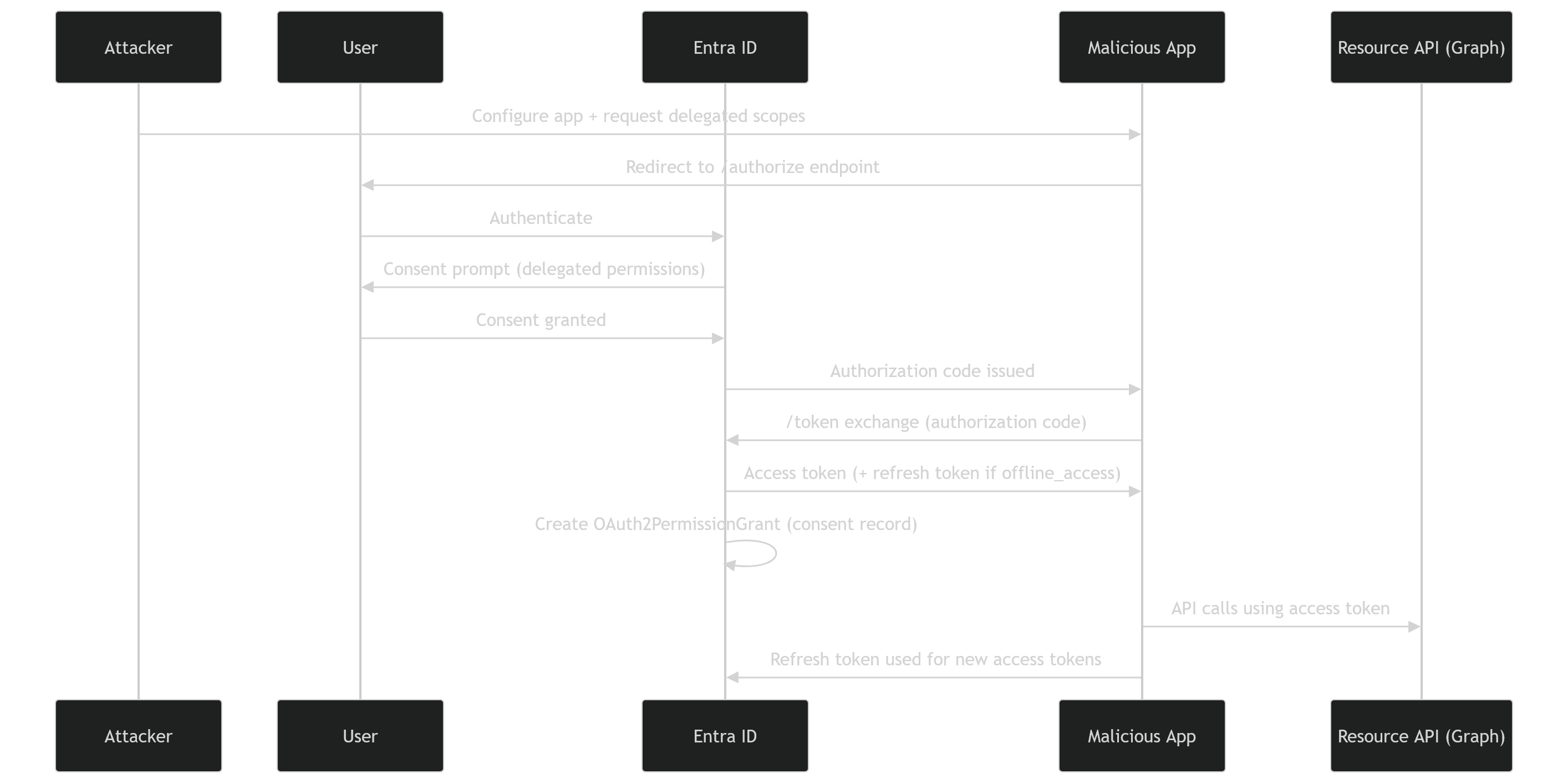 ⚠️ Attention: This article focuses on cross-tenant OAuth consent grant abuse involving external applications accessing resources in the target tenant. Intra-tenant consent abuse scenarios are out of scope.